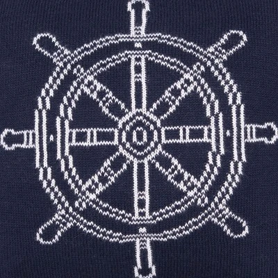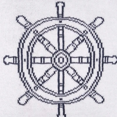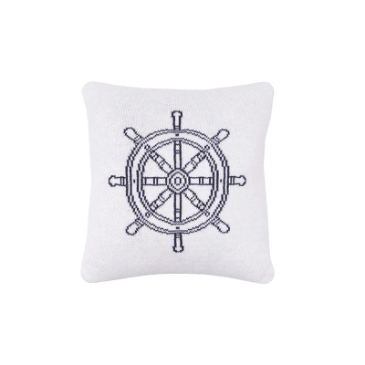 Enjoy a little maritime style with this cozy knit pillow. This reversible decorative throw pillow features a navy blue ship’s wheel on one side and white on the reverse, so all you need to do is add a red throw to give your bed or sofa a fun nautical Americana style!