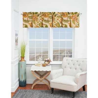 A classic floral leaf pattern in warm earthy tones of rust, sage green, yellow an orange comprise the beautifully printed pattern of the Amelia valance. From the farmhouse to your rustic retreat the Amelia valance is perfect for any room in your home. Measuring 72 inches wide, this valance includes a two inch rod pocket and 1.5 inch decorative header. Crafted of cotton this unlined valance is machine washable for easy care.