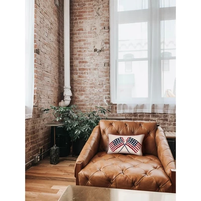 Celebrate the birth of a nation with this charming, tufted pillow. This plush pillow features two tufted American flags flying on chain-stitched poles. The design stands out against the light beige ground and the contrasting red piped edge. Crafted with a cotton cover and soft polyester filling, this pillow brings a patriotic touch to your everyday decor. Pair with our Double US Flag pillow to complete your patriotic themed home.