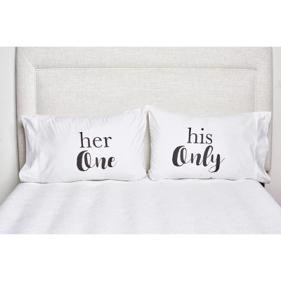 Whether you’re “her one” or “his only,” you can snuggle up in comfort and style with these heartfelt and contemporary 100% cotton pillow cases. This matching case set makes the perfect engagement or wedding gift and will send a new couple off to their home or honeymoon in style.