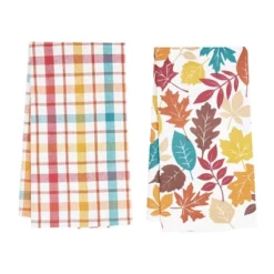 C&F Home Fall Leaves & Plaid Printed & Woven Kitchen Towel Set Of 2